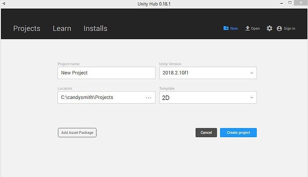 2. Create a new 2D project