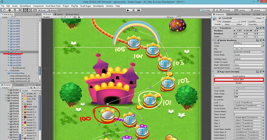 7 - Now you need to create new level design for your map. Go to Game Scene --> GameEditor --> Level --> Press "+" button to create level 101. Do the same for all your levels.