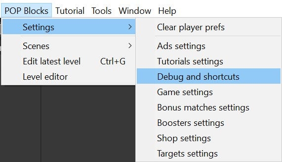 Debug and shortcuts