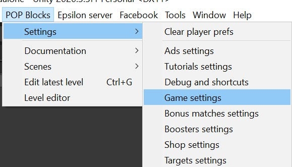 1 - Go to POP Blocks --> Settings --> Game Settings
