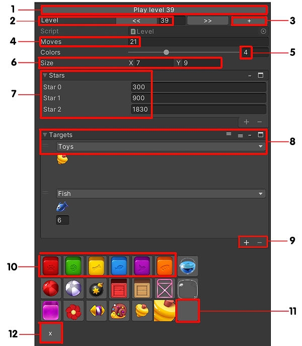 Pop Blocks has a flexible visual editor that allows you to easily create new levels, change settings and create new game objects.